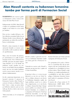 Formacion Social y Alan Howell ta hopi problema social cu ta afecta E mocion aki a haya sosten di 15