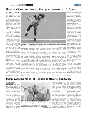 Bob Cousy with the Presi- teammates who faced dis- recipient this year. Trump