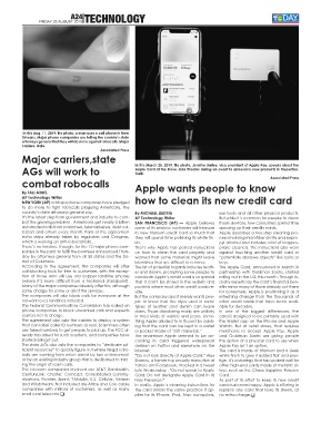 There’s no timeline, though, for the 12 major phone com- That’s why Apple has posted instructions priate cleaners. The instructions also warn