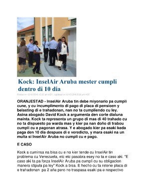 caso aki ta pa forza InselAir Aruba pa cumpli cu su obligacion