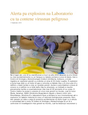 su mes accidentalmente cu un hangua cu tabata contene e virus di Ebola. Den e