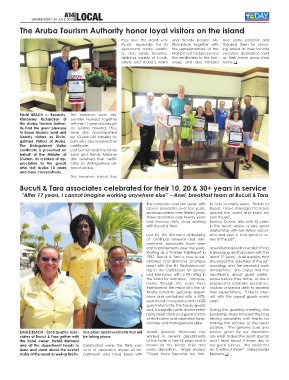 EAGLE BEACH – Each quarter, asso- ture plans and investments that will Juana (Anchie) Werleman has service given by our associates
