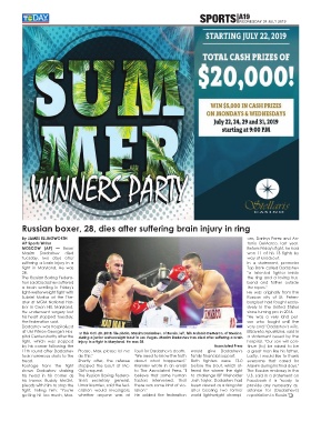 fight, which was stopped injury in a fight in Maryland. He was 28. hospital. "Our son will con-