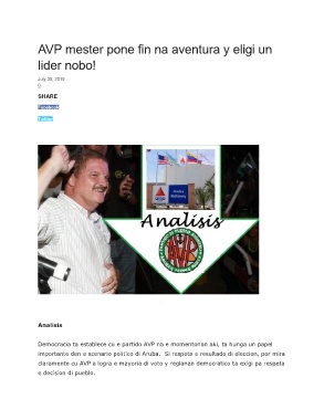 Democracia ta establece cu e partido AVP na e momentonan aki, ta hunga un papel