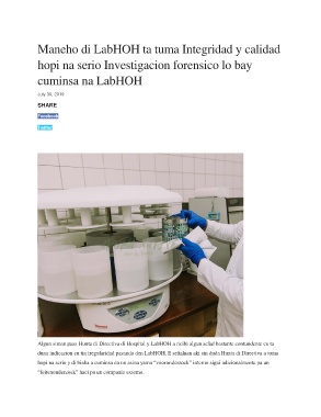 duna indicacion cu tin iregularidad pasando den LabHOH. E señalnan aki sin duda Hunta di Directiva a tuma