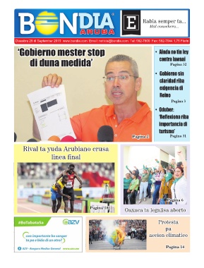 Diasabra 28 di September 2019 www.bondia.com Email: noticia@bondia.com Tel: 582-7800 Fax: 582-7044 1,75 Florin