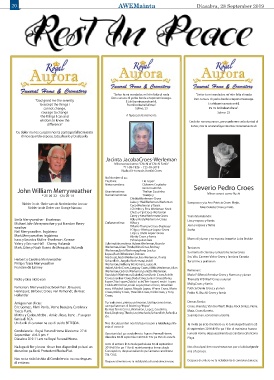 Diasabra Di 9-11 am na Royal Funeral Home. diasabra 28 di september 2019 di 7’or pa 9’or di anochi. Playa.