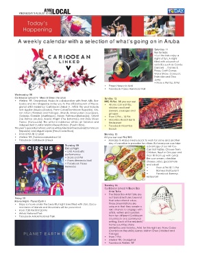 A weekly calendar with a selection of what’s going on in Aruba