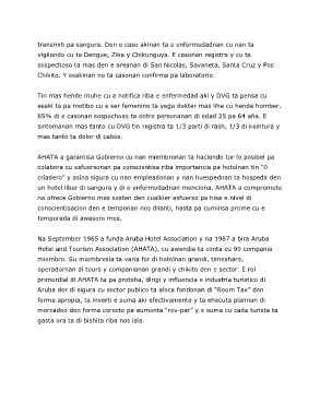 Na September 1965 a funda Aruba Hotel Association y na 1987 a bira Aruba
