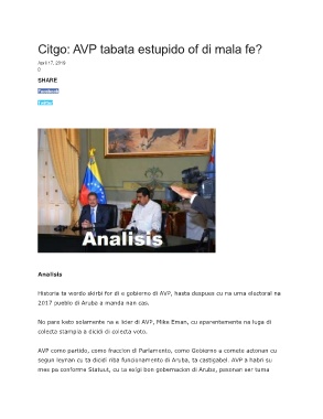 AVP como partido, como fraccion di Parlamento, como Gobierno a comete actonan cu