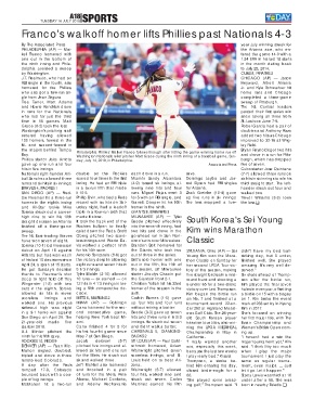 quiet down the Reds. Scott two hits and drove in the Kim wins Marathon