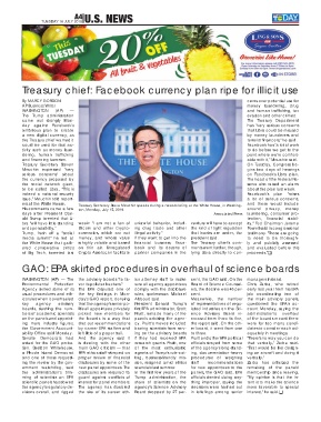 the White House that gath- is highly volatile and based financial business, Face- The Treasury chief's com- ly and publicly assessed