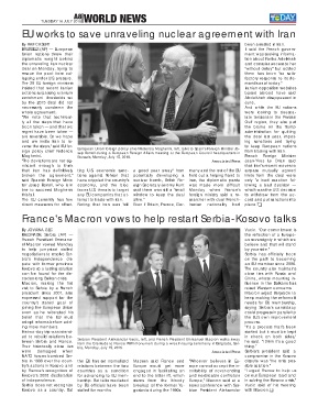 of independence. bership. But talks mediated stems from the bloody Europe," Macron said at a in solving the Kosovo crisis,"