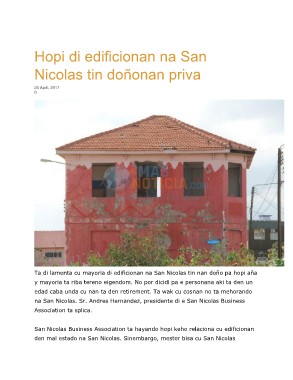 Ta di lamenta cu mayoria di edificionan na San Nicolas tin nan doño pa hopi aña