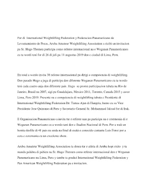 Levantamiento de Pesas, Aruba Amateur Weightlifting Association a ricibi un invitacion