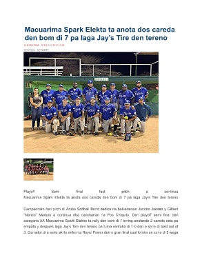 categoria AA Macuarima Spark Elektra ta rally den bom di 7 inning anotando 2 careda esta pa
