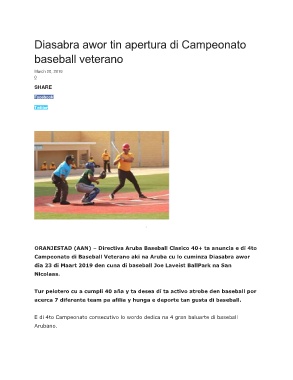 Campeonato di Baseball Veterano aki na Aruba cu lo cuminza Diasabra awor