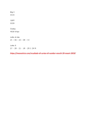 Big 4 3123 1OFF 5319 Zodiac 4818 Virgo Lotto di dia 21 – 06 – 23 – 08 – 10 Lotto 5 27 – 28 – 21 – 18 – 29 J: 24 M https://masnoticia.com/resultado-di-sorteo-di-number-anochi-20-maart-2019/