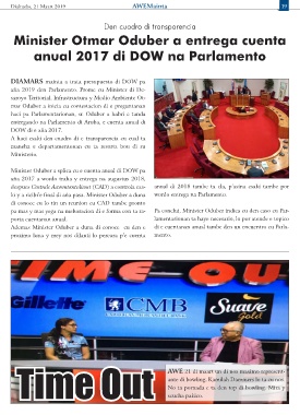 Ademas Minister Oduber a duna di conoce cu den e di e cuentanan anual tambe den un encuentro cu Parla-