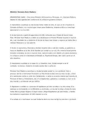 Plan. Minister Ruiz Maduro a referi na e declaracion di Prome Minister tocante e reunion