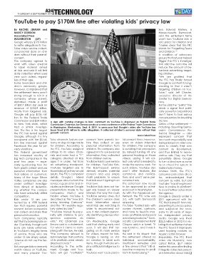 and many popular You- Tube will get “verifiable” YouTube won’t seek paren- from its lawbreaking.” al information about kids.q