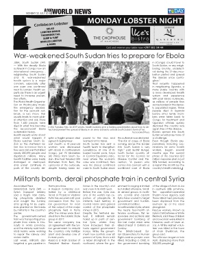 Ebola reaches South Su- signed in September. warned not to travel. "The risk of cases of Ebola Even though Ebola pre-