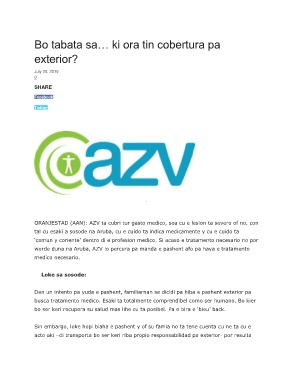 worde duna na Aruba, AZV lo percura pa manda e pashent afo pa haya e tratamento