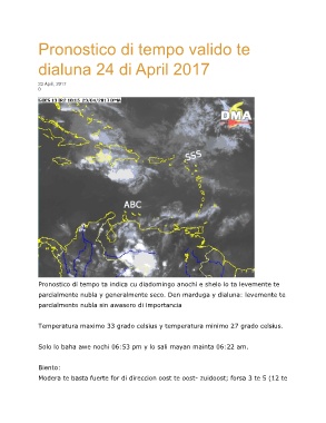 Pronostico di tempo ta indica cu diadomingo anochi e shelo lo ta levemente te