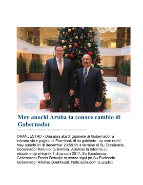 Gobernador Refunjol ta termina. Ademas ta informa cu