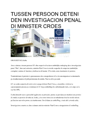 penal “Ibis”, den cual entreotro, minister Paul Croes ta wordo sospecha di corupcion (ambtelijke