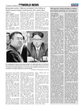 rested a woman Wednes- minal of Kuala Lumpur In- surveillance video from the lia (AP) — Mongolian Approval of the Erdenet