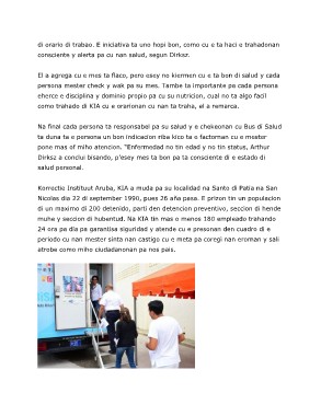 di orario di trabao. E iniciativa ta uno hopi bon, como cu e ta haci e trahadonan