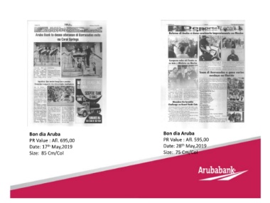 Bon dia Aruba Bon dia Aruba PR Value : Afl. 695,00 PR Value : Afl. 595,00 th Date: 17 May,2019 Date: 28 May,2019 th Size: 85 Cm/Col Size: 75 Cm/Col