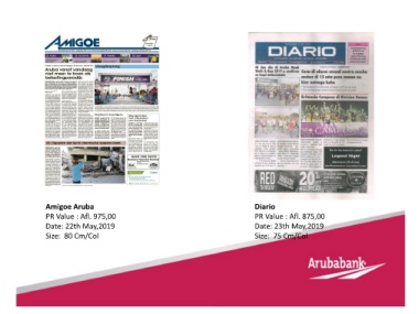 Amigoe Aruba Diario PR Value : Afl. 975,00 PR Value : Afl. 875,00 Date: 22th May,2019 Date: 23th May,2019 Size: 80 Cm/Col Size: 75 Cm/Col