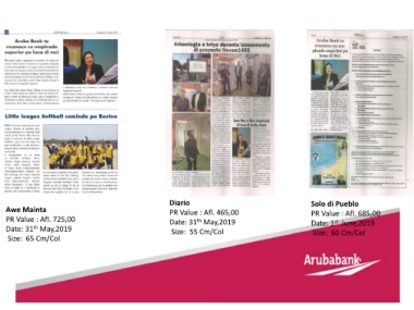 Diario Solo di Pueblo Awe Mainta PR Value : Afl. 465,00 PR Value : Afl. 685,00 PR Value : Afl. 725,00 Date: 31 May,2019 Date: 1 June,2019 th st Date: 31 May,2019 Size: 55 Cm/Col Size: 60 Cm/Col th Size: 65 Cm/Col