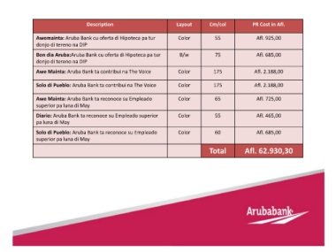 Awemainta: Aruba Bank cu oferta di Hipoteca pa tur Color 55 Afl. 925,00