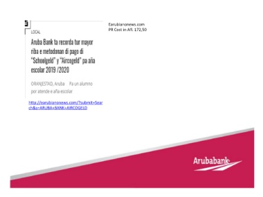 Earubianonews.com PR Cost in Afl. 172,50 http://earubianonews.com/?submit=Sear ch&s=ARUBA+BANK+AIRCOGELD