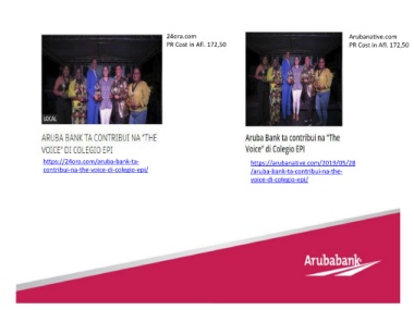 24ora.com Arubanative.com PR Cost in Afl. 172,50 PR Cost in Afl. 172,50 https://24ora.com/aruba-bank-ta- https://arubanative.com/2019/05/28 contribui-na-the-voice-di-colegio-epi/ /aruba-bank-ta-contribui-na-the- voice-di-colegio-epi/