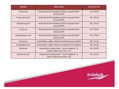 Arubanative.com Aruba Bank a regala Premio di entrada pa Ana Gabriel Afl. 172,50