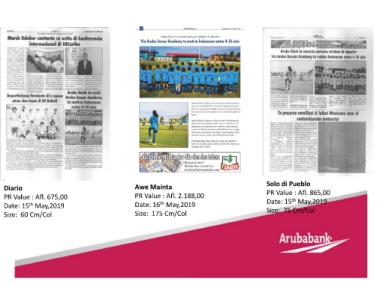 Diario Awe Mainta Solo di Pueblo PR Value : Afl. 865,00 PR Value : Afl. 675,00 PR Value : Afl. 2.188,00 Date: 15 May,2019 th th Date: 15 May,2019 Date: 16 May,2019 th Size: 60 Cm/Col Size: 175 Cm/Col Size: 75 Cm/Col