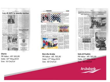 Diario Bon dia Aruba Solo di Pueblo PR Value : Afl. 565,00 PR Value : Afl. 765,00 PR Value : Afl. 565,00 th Date: 16 May,2019 Date: 17 May,2019 Date: 17 May,2019 th th Size: 55 Cm/Col Size: 60 Cm/Col Size: 50 Cm/Col