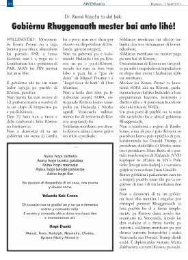gobièrnu sin wesu di lomba sin niun opstákulo; posishon komo pais i pueblo di pas,