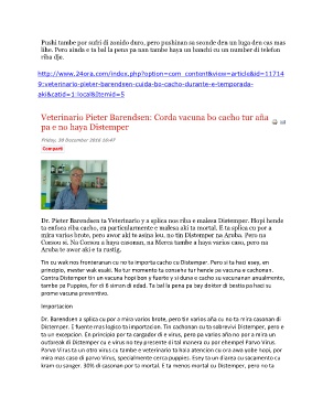 Dr. Pieter Barendsen ta Veterinario y a splica nos riba e malesa Distemper. Hopi hende
