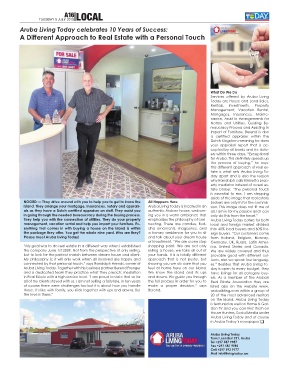 connected by that personal touch,” says Randolph Arends, owner of showing you we do care that you es.” Besides that Aruba Living To-