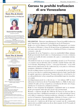 el día Lunes 24 de Junio desde las 2 a las 4 de la tarde. ministerial pa prohibí traficacion di oro directamente for di Venezuela òf