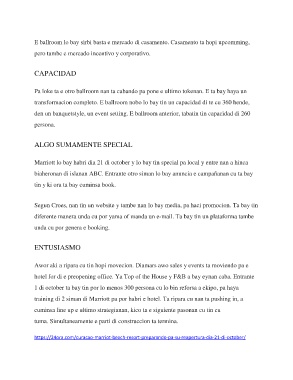 Marriott lo bay habri dia 21 di october y lo bay tin special pa local y entre nan a hinca