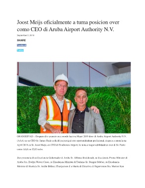 April 2019 cu Sr. Joost Meijs, ex-CEO di Eindhoven Airport, lo tuma e responsabilidadnan over di Sr. Fazio