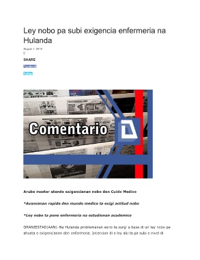 ahusta e exigencianan den enfermeria. Intencion di e ley aki ta pa subi e nivel di