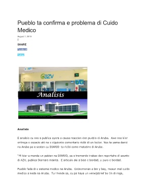 E analisis cu nos a publica ayera a causa reaccion den pueblo di Aruba. Awe nos kier