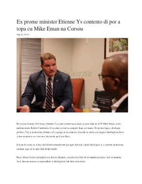 Ex prome minister di Corsou, Etienne Ys a tene combersacionnan cu tanto lider di AVP Mike Eman, como